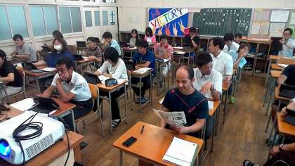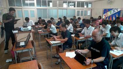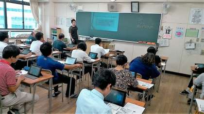 本日放課後、1年4組の教室で校内ICT研修会が行われました。