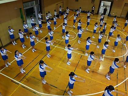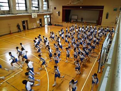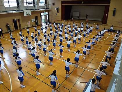 行進の練習の後は東中体操です。