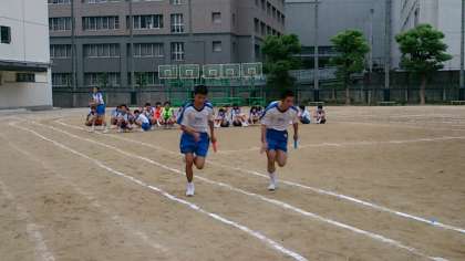 6時限目、3年4、5組の体育科の授業で、全員リレーの練習をしています。3年生が最も気合いの入る種目、5つのクラスの白熱したレースが今から楽しみです!