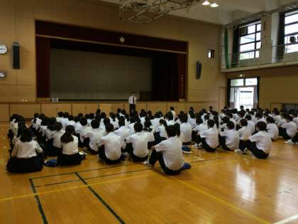 今日は西垣先生からのお話がありました。有言実行という言葉がありますが、体育大会で自分のクラスが優勝するんだという思いや、勝ちたいという気持ちを口に出すことも大切です。「口に十」と書いて「叶う」となりますが、何度も繰り返し口にすることで実際に行動に繋がり実現することもあるでしょう。進路や将来の夢についても口に出して頑張るのはどうでしょうか。というお話でした。