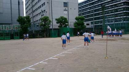 昨日の台風16号の暴風雨でグランドは水が浮いていましたが、早朝から体育大会実行委員会の皆さんの懸命な復旧活動のおかげで、グランドが普通に使用できるコンディションになりました。