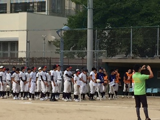 東中の試合はこのあと、第2試合9:50プレイボール予定です。対戦相手は浪速区代表難波中学校です!