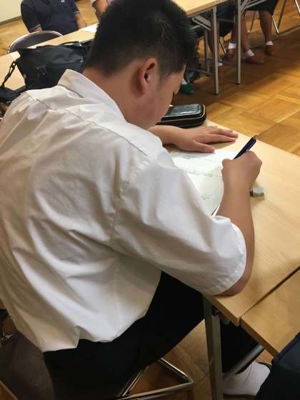 今日は市岡中学校にて、発表原稿を中国の先生に見ていただき、内容を深める作業を行いました。3人とも真剣に取り組んでいました。