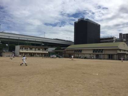市岡中学校と港南中学校、東中学校の3校が集まり、変則ダブルヘッダーでの試合を行ないました。
