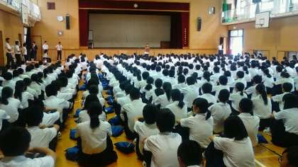 本日9月26日、本校体育館にて全校集会を行いました。