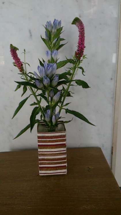 事務室、職員室前には、松本さんが生けてくださった、美しい花々が、体育大会に向けて頑張っている東中生の疲れを癒してくれています。
