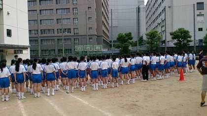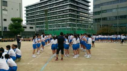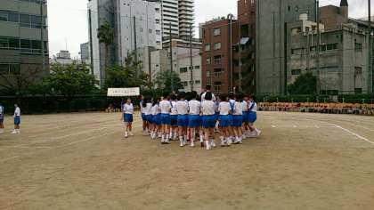最後に縦割り応援の練習を3年の応援団長を中心に行っています。