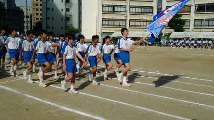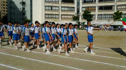クラスの行進です。2年生、3年生、1年生の順でしっかりと行進しています。