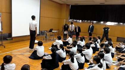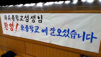 今日、東中に韓国の海美中学校の校長先生と2人の先生がこられました。