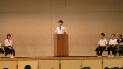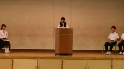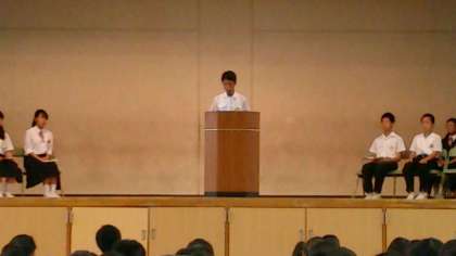 立会い演説会が始まりました。会長、副会長候補が順に公約をしっかりと発表してくれています。