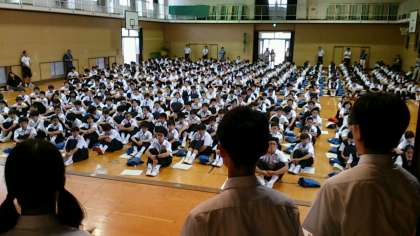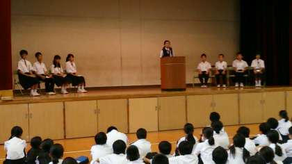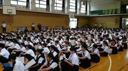 全員が真剣に公約を聞いています。