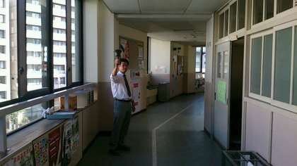 本日、大阪市一斉の統一テストの日です。西垣先生の鐘の合図で始まりました。