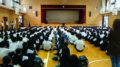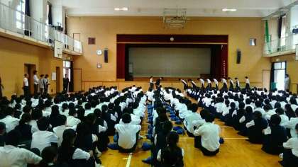 その一例を紹介します。先ほど、女子ソフトテニス部に3位入賞の表彰状を伝達しました。昨日、大阪インドアソフトテニス大阪市大会があり、これまで戦ってきて敗戦を繰り返してきた学校と対戦しました。しかし、その逆境を跳ね除け、見事勝利しました。これは、技術だけの差ではありません。先週の金曜日に開かれた部活動集会で、部に所属する部員としての心構えや改めての決意、部活動だけではなく、学校生活を始め自分の目の前にある課題から逃げず、果敢に挑戦していき、この東中をもっともっと良くしていこうと全部、全部員で確認をしました。ソフトテニス部の皆さんは、進歩するためにこれまでの自分を厳しく反省し、そして新たな気持ちと決意で臨んでくれ、そして結果、進歩を遂げてくれたのだと思います。今日から後期のスタートです。皆さんもそれぞれの目標に向かって進歩していってください。