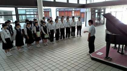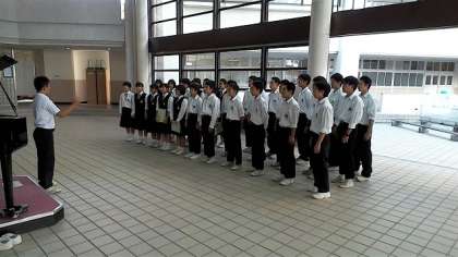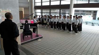 6限目、玄関ホールでは3年1組が合唱練習をしていました。