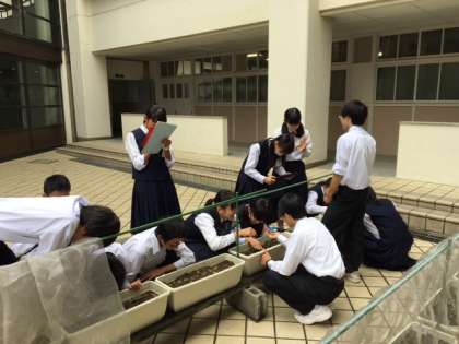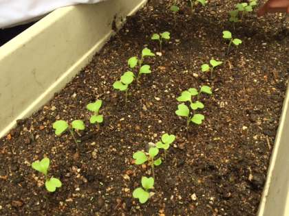 先週に種を植えた水菜が芽を出しました。計画通りに間引きを行う班もいくつかありました。