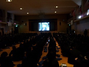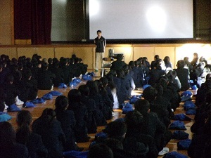 終業式のあとには、薬物乱用防止のためのビデオが上映されました。非常にリアルな内容に、見ている生徒の表情は真剣そのものでした。