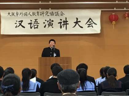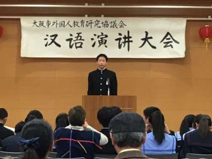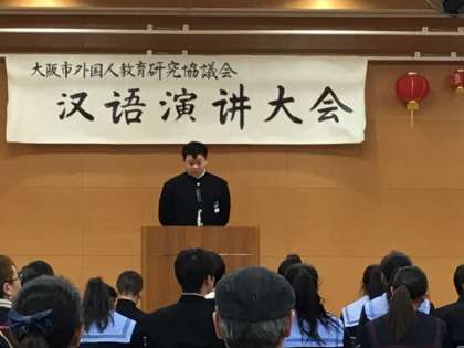 大阪ビジネスフロンティア高校にて、中国語弁論大会 中学生の部が行われました。東中からも3名参加し、奮闘、中学校の生活、異文化体験という題で自分の意見を発表しました。緊張しながらも中国語で熱弁していました。