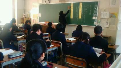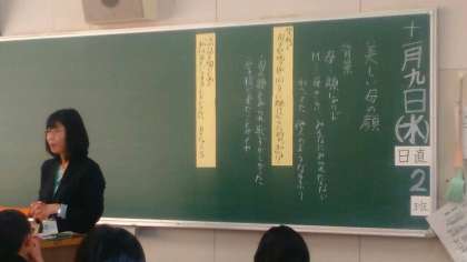 板書と授業の様子です。写真は2年2組です。