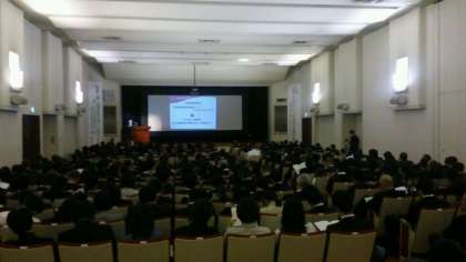 大阪市・府内からたくさんの先生方が参加され、メイン会場の講堂が満員のため、サブ会場の8階の研修室5に分かれての参加となっています。