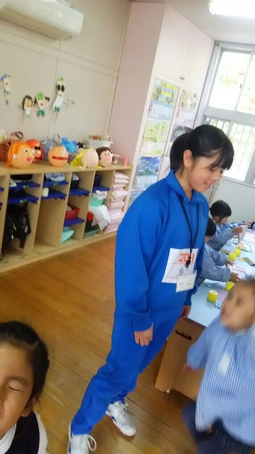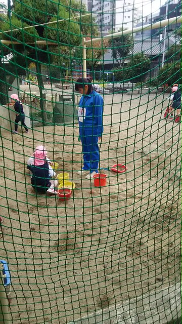 園庭や部屋の中で、子どもと一緒に遊んでいます。