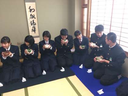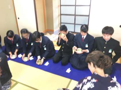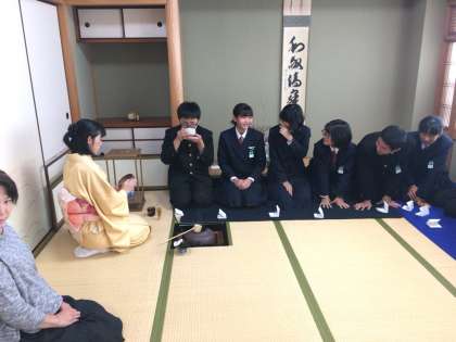 本日3年生はPTA茶道部の方にお越しいただき、茶道体験を行なっています。作法を教えていただきながら、御菓子や御抹茶をいただきました。茶道を通して、普段触れる機会の少なくなっている日本の伝統文化を体験し、おもてなしの心を感じることができました。