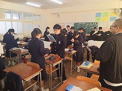 今日は3組と1組でアーネスト先生との授業になります。テスト前ですが、活動を通してしっかりと英語を身につけましょう。