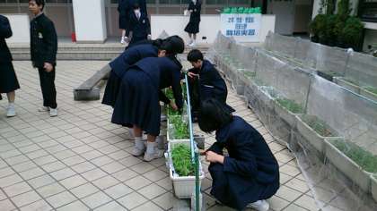 2年生の技術・家庭科では、ミズナの栽培学習に取り組んでいます。
