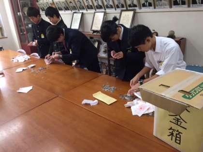 先週より生徒会によって実施した赤い羽根共同募金活動は、皆さんのご協力の結果、18765円集まりました。