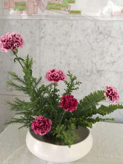 カーネーションの色合いも、少し雪が積もった様に見えます。