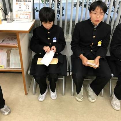 今日のわかくさ学級は、生活単元学習の一環で年賀はがきを買いに郵便局へ行きました。