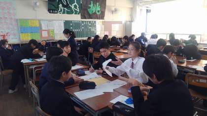 5限目の前半は、各係に分かれての班別会議を行い、後半はクラスでの班会議を行いました。