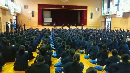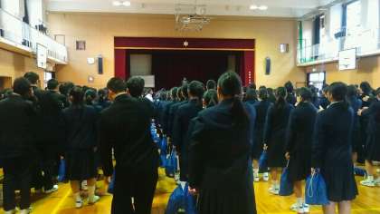 野球部、剣道部、バレー部などが大会などで結果を残したことを讃えました。