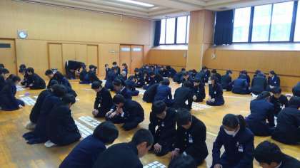 ※写真は1.2組の様子です。多目的室で行いました。