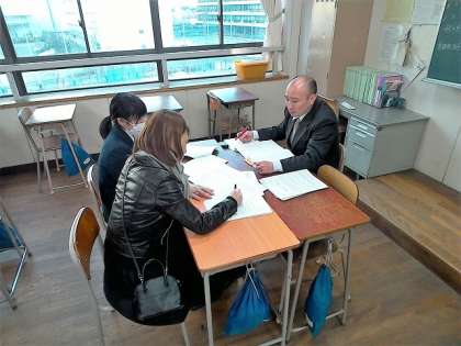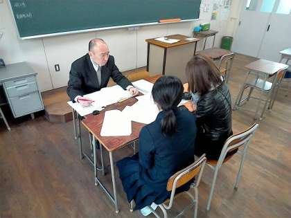 先週から始まった期末懇談会も、今日で3日目を迎え、3年生の教室では受験校の最終確認をしていました。