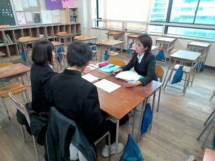 3年生では、進路の話はもちろんのこと、情報機器の使い方や冬休みの過ごし方についての話もされていました。