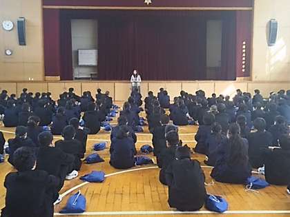 小野先生からは、部屋の掃除をして、環境を整えて新年を迎えるようにとお話がありました。また、夢中になれるものを1つでも多く見つけてください。三学期には冬休み中に成長できたという姿を見せてください。