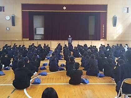 掛川先生からは生活面でのお話でした。安全面では、交通ルールをしっかり守ること。自分たちが注意を怠ったせいで事故に遭う可能性もあるので気をつけましょう。金銭面では、色々なイベントがありますが、必要以上のお金は持ち歩かないようにしましょう。また、懇談でも話がありましたが、情報機器の使用についてもきちんと家で話し合って下さい。