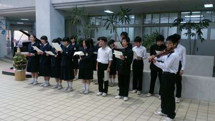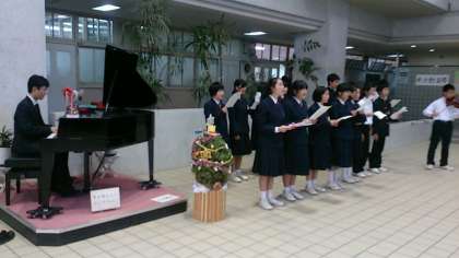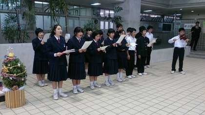 放課後、東中ホールでは、明日に迫ったクリスマスコンサートのリハーサルが行われています。今年は、有志による合唱が加わり、美しい歌声が、ホールに響いています。また、バイオリンの演奏もあります。明日の本番が楽しみです。