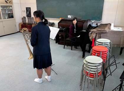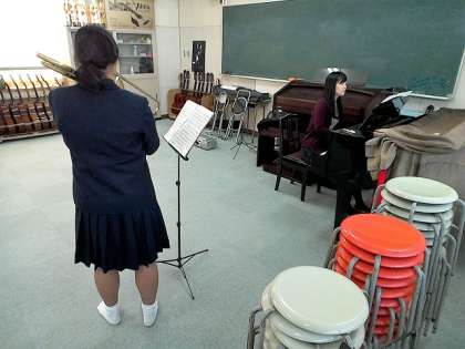 第2音楽室では、ピアニストである八代先生の奥様が東中生のために指導に来られていました。