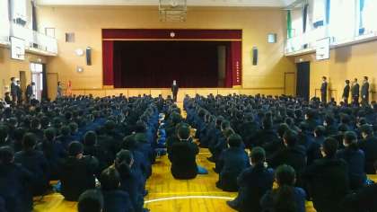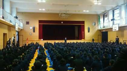 その上で、校長先生が2017年を迎えるにあたって、東中をもっと良くしていくために大切にすると決意された「感謝の気持ち」「自分を信じる気持ち」「最後まで諦めない気持ち」についてのお話がありました。