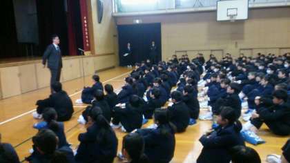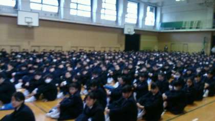 まもなく3学期の始業式が始まります。各先生方から諸注意が行われています。