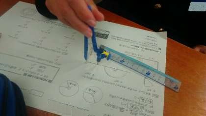コンパスを用いて扇形を書いています。