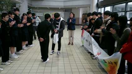 1日が過ぎるのも早く、せっかく仲良くなった海美中の仲間とのお別れの時が来ました。東中ホールでのさようならセレモニーです。