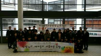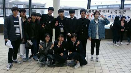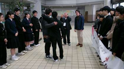 海美中学校の皆さんと、さようならセレモニーに参加した東中代表の学級代表との記念撮影です。