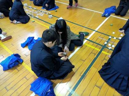 5限目は、体育館で2年生の百人一首大会を見学しました。