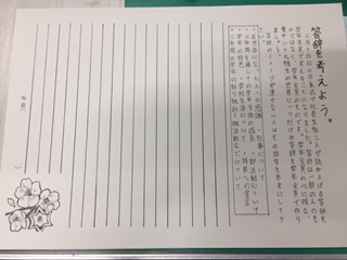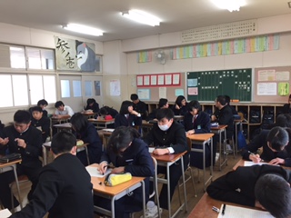 3年生は本日6限目に、卒業式で代表生徒が読み上げる「答辞」を学年全員で考えました!用紙も生徒が手書きで作成しました。また、取り組む前には各クラスで代表生徒が「答辞」を考えることについて語りました。