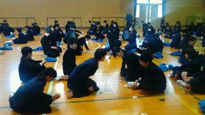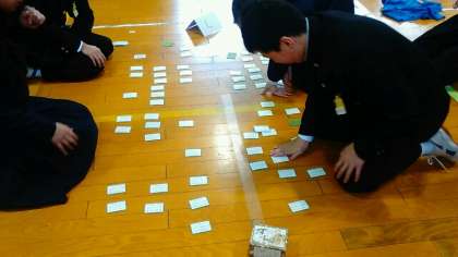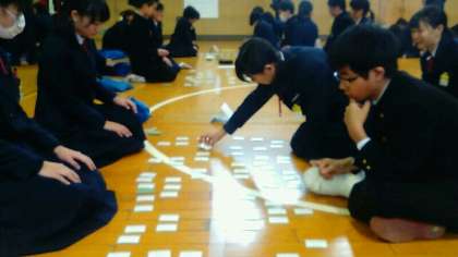 本日の5、6時限目に体育館にて百人一首大会を行いました。