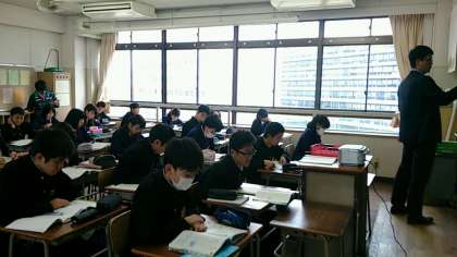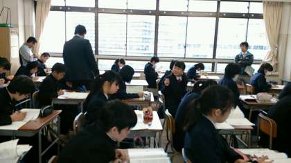 6時限目、英語科で校内公開授業を行い、英語教育の充実を目指し、教員間で研鑽を積んでいます。