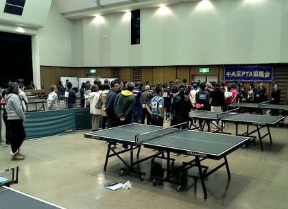 本日中央区民センターで、中央区PTA協議会卓球大会が開催されています。