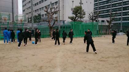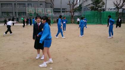 昼休み、太陽の日差しもなく、かなり冷え込んでいる運動場ですが、東中生は元気です。寒くないのかなぁ?!